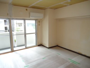 前回のキッチンリフォームと合わせて、室内の間取りの変更を行いました。既存は和室を含む2LDKでしたが、今回のリフォームで仕切りの壁を撤去し、和室を洋室に変えて1LDKのお部屋に変更致しました。